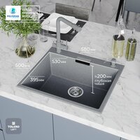 Если еще и установить смеситель бренда Tolero того же цвета, то и мытье посуды, и чистка овощей будут доставлять вам эстетическое удовольствие. Набор сливной арматуры с нержавеющим клапаном в комплекте.