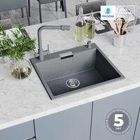 Мойка каменная TOLERO LOFT 580 отлично подходит для узких столешниц. При этом в мойке можно вымыть даже противень. Мойка кухонная квадратная выдерживает падение кастрюль, не впитывает жир, грязь, запахи.