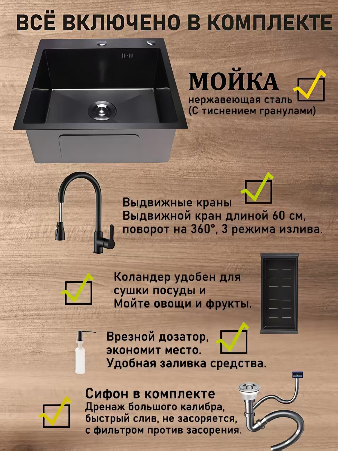 Купить Мойка для кухни нержавейка и раковина кухонная, нержавеющая сталь, шумоизоляция, прямоугольная, 60 см x 45 см, черный с доставкой по всей России. Мойка для кухни нержавейка и раковина кухонная, нержавеющая сталь, шумоизоляция, прямоугольная, 60 см x 45 см, черный: сравнение цен, характеристики, фото, актуальное наличие и цены.