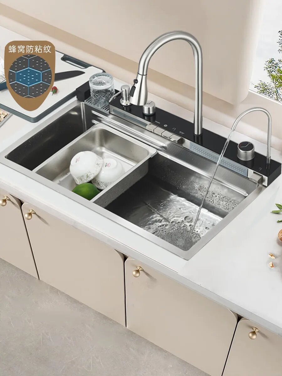 Мойка для кухни нержавейка с дисплеем и водопадом 750*460: сравнение цен, характеристики, фото, актуальное наличие и цены.