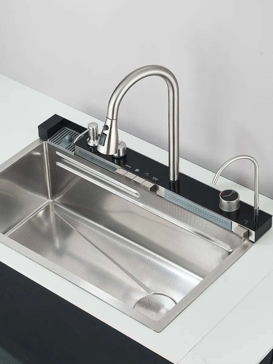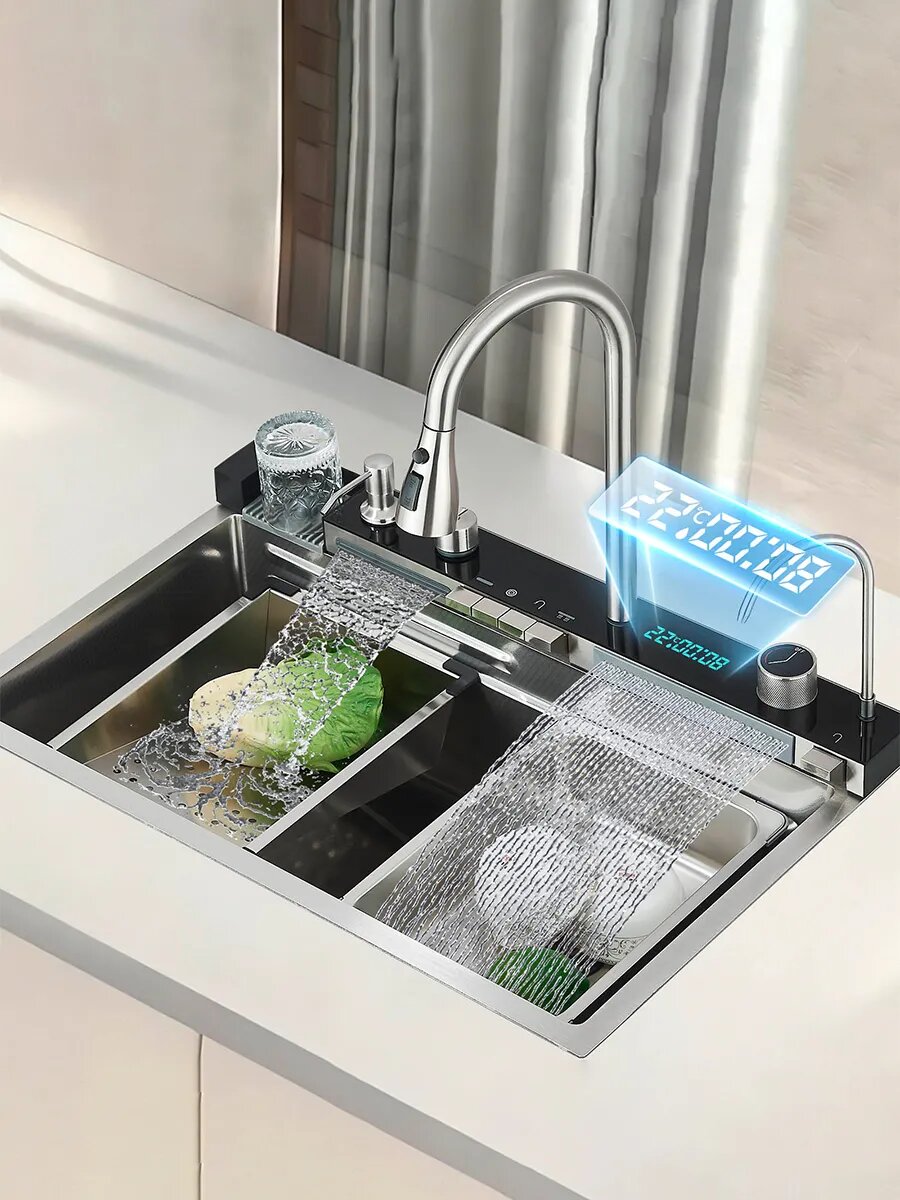 Купить Мойка для кухни нержавейка с дисплеем и водопадом 750*460 с доставкой по всей России.
