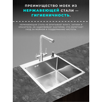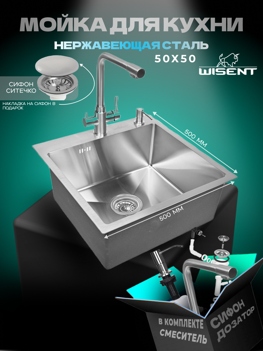 Мойка для кухни нержавеющая 50х50. Смеситель с подключением фильтра, сифон с ситечком, дозатор.: сравнение цен, характеристики, фото, актуальное наличие и цены.