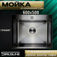 Купить Мойка SIRIUSLINE Premium 60х50 из нержавеющей стали Графит SL6050G (в комплекте с коландером, врезным дозатором, и сифоном) толщина стали 3 мм с доставкой по всей России. Мойка SIRIUSLINE Premium 60х50 из нержавеющей стали Графит SL6050G (в комплекте с коландером, врезным дозатором, и сифоном) толщина стали 3 мм: сравнение цен, характеристики, фото, актуальное наличие и цены.