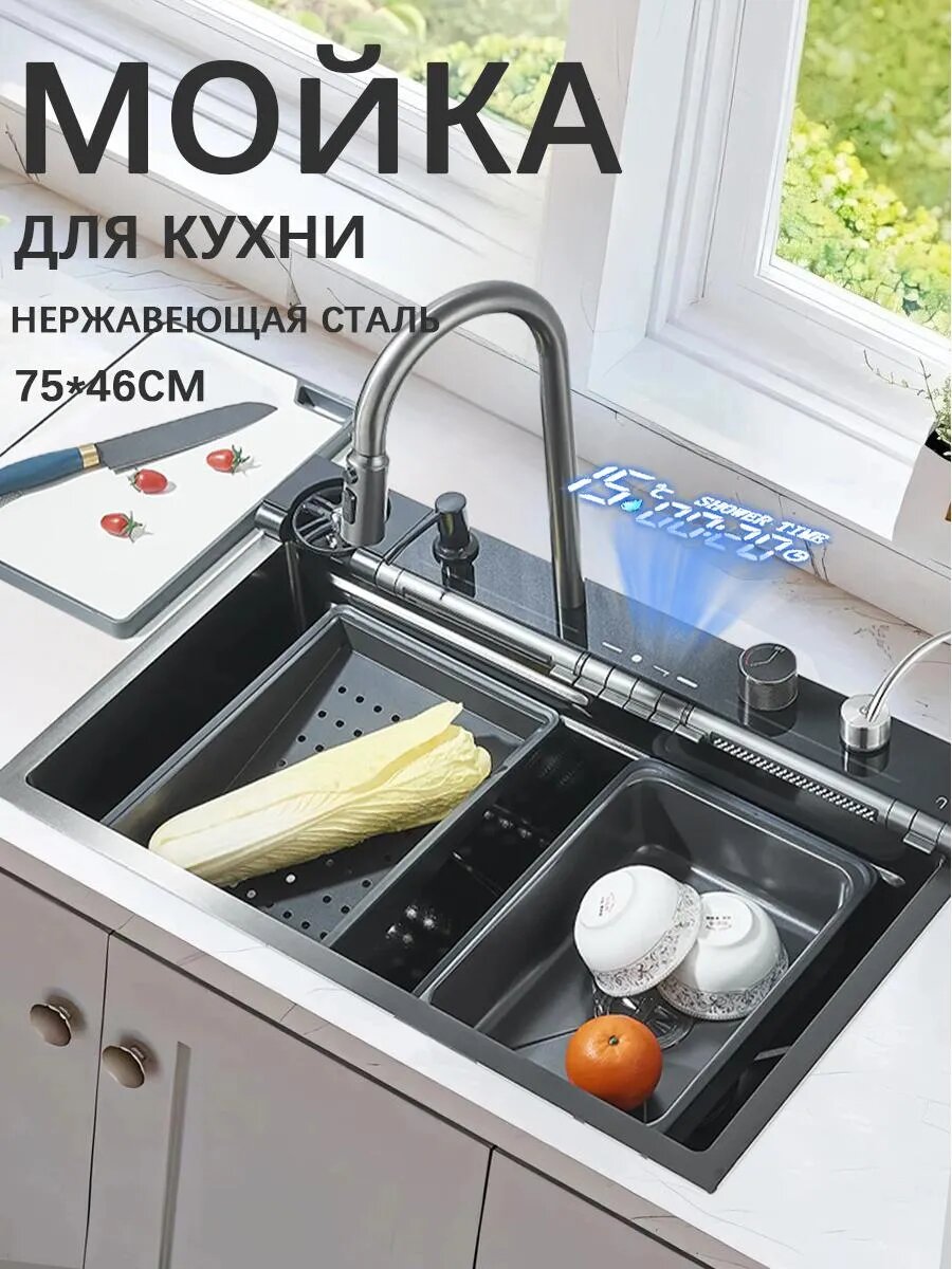 Мойка кухонная ououfaucet, нержавеющая сталь, цвет серый металлик, 75х46 см: сравнение цен, характеристики, фото, актуальное наличие и цены.