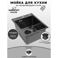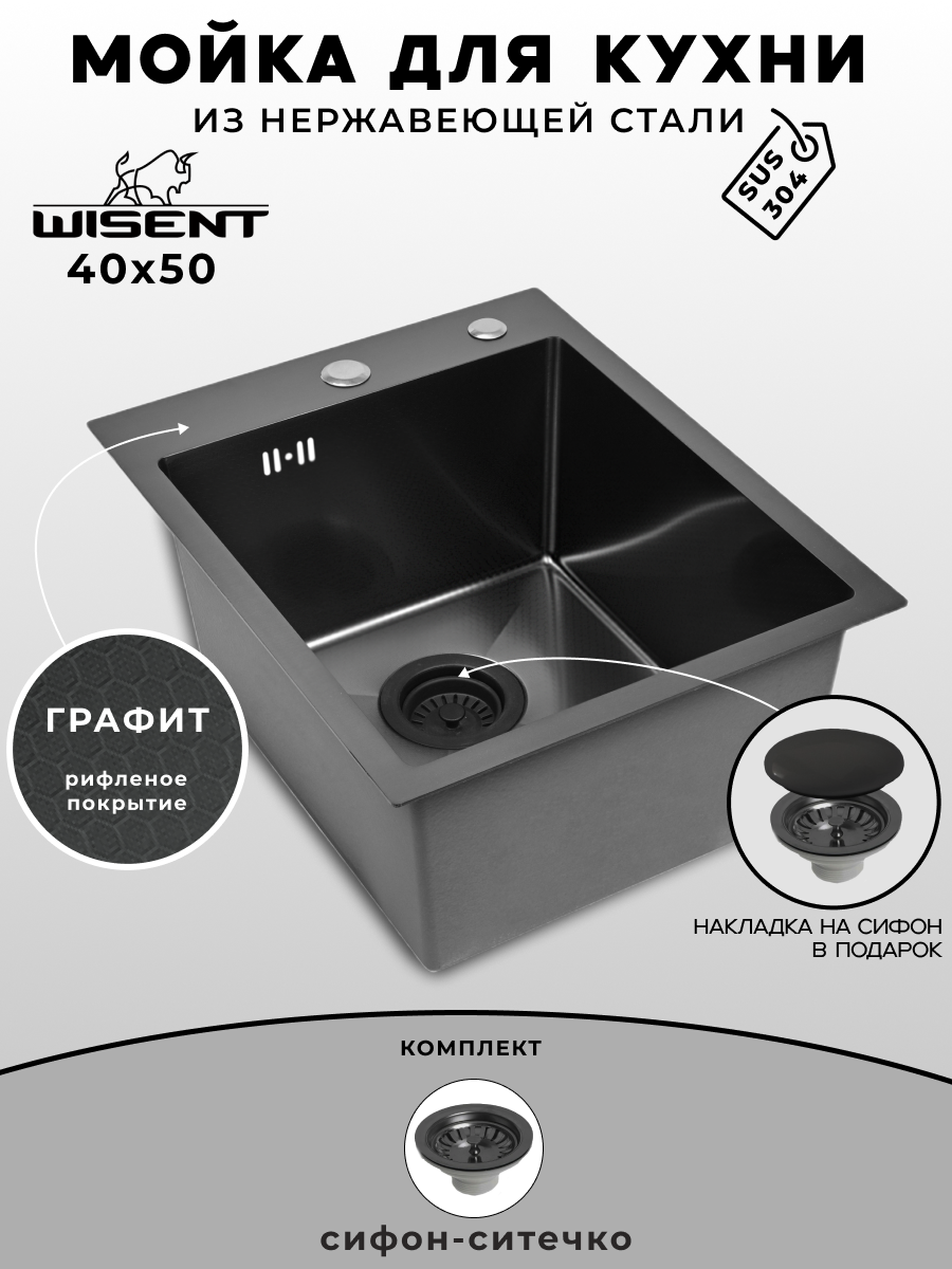 Мойка для кухни нержавеющая 40х50, рифленая, с PVD покрытием графит. Сифон с ситечком.: сравнение цен, характеристики, фото, актуальное наличие и цены.