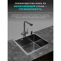 Купить Мойка для кухни нержавеющая 40х50, рифленая, с PVD покрытием графит. Сифон с ситечком, дозатор. с доставкой по всей России.