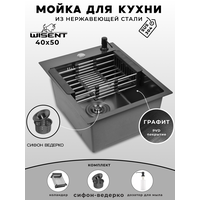 Мойка для кухни нержавеющая 40х50, с PVD покрытием графит. Сифон с ведерком, дозатор, коландер.: сравнение цен, характеристики, фото, актуальное наличие и цены.