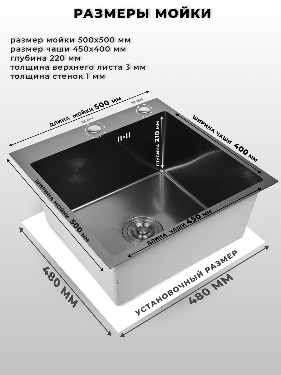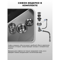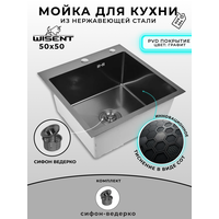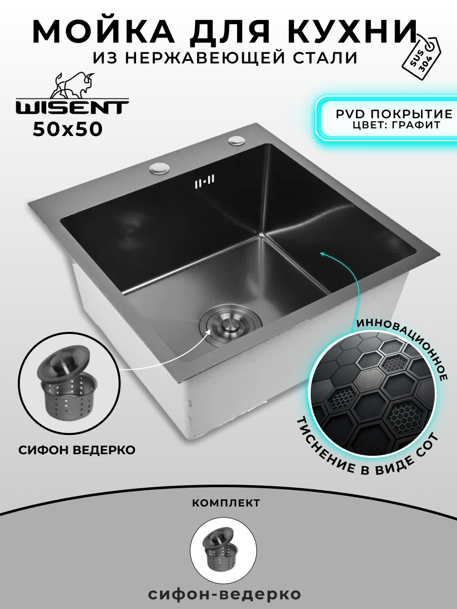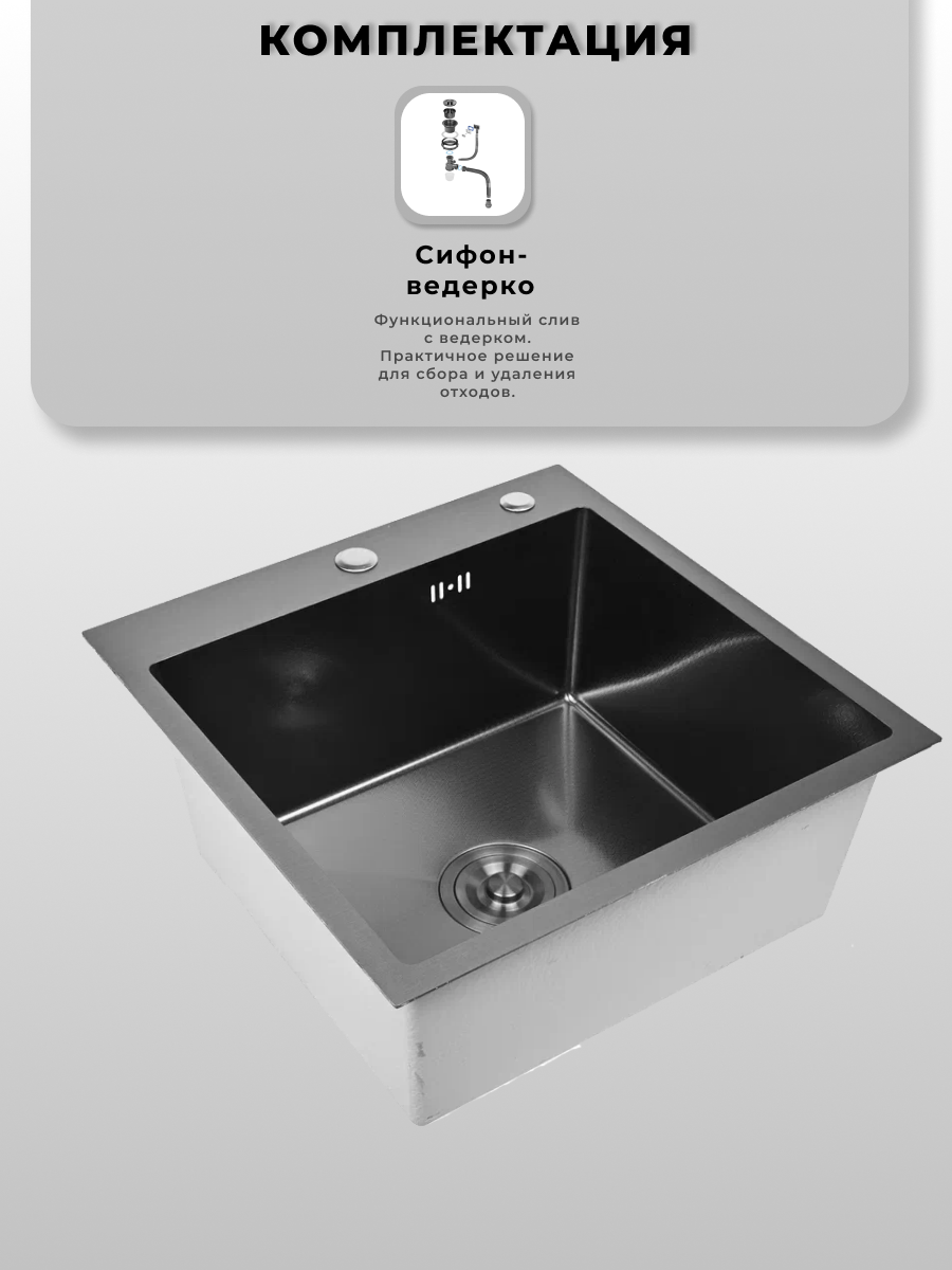 Мойка для кухни нержавеющая 50х50, рифленая, с PVD покрытием графит. Сифон с ведерком.: сравнение цен, характеристики, фото, актуальное наличие и цены.