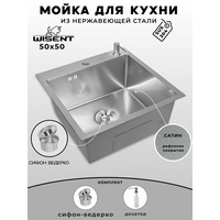 Мойка для кухни нержавеющая 50х50, рифленая. Сифон с ситечком, дозатор.: сравнение цен, характеристики, фото, актуальное наличие и цены.
