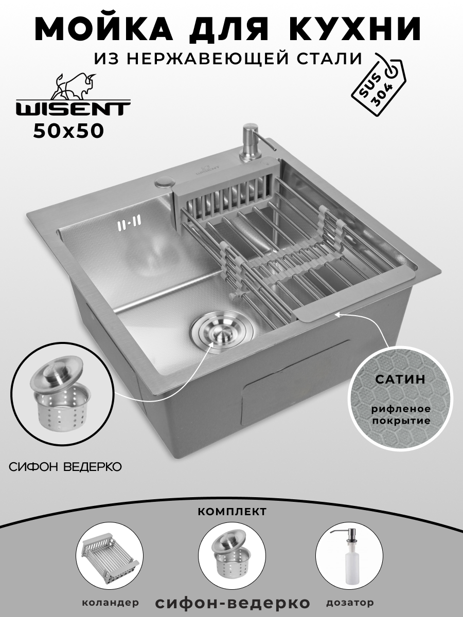 Мойка для кухни нержавеющая 50х50, рифленая. Сифон с ситечком, дозатор, коландер.: сравнение цен, характеристики, фото, актуальное наличие и цены.
