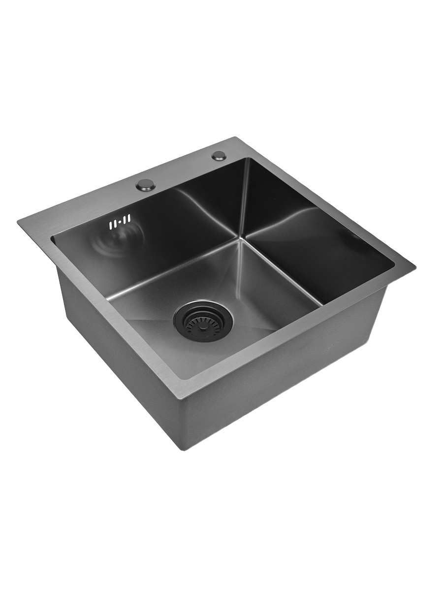 Купить Мойка для кухни нержавеющая 50х50, с PVD покрытием графит. Сифон с ситечком. с доставкой по всей России.