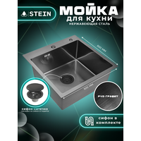 Мойка для кухни нержавеющая 50х50, с PVD покрытием графит. Сифон с ситечком.: сравнение цен, характеристики, фото, актуальное наличие и цены.