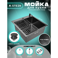 Купить Мойка для кухни нержавеющая 50х50, с PVD покрытием графит. Сифон с ситечком, дозатор, коландер. с доставкой по всей России.