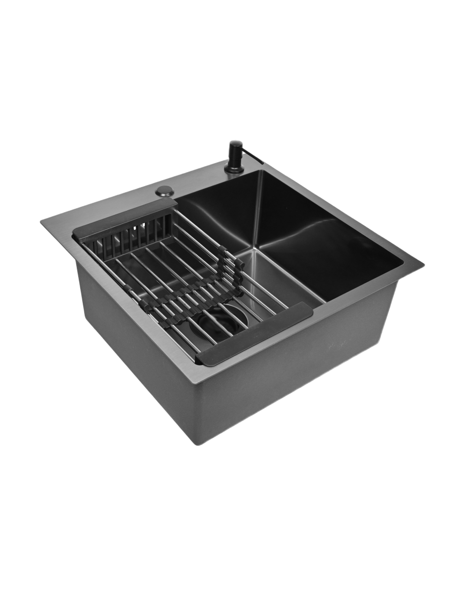 Мойка для кухни нержавеющая 50х50, с PVD покрытием графит. Сифон с ситечком, дозатор, коландер.: сравнение цен, характеристики, фото, актуальное наличие и цены.