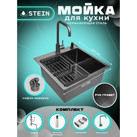 Купить Мойка для кухни нержавеющая 50х50, с PVD покрытием графит. Смеситель, Сифон с ведерком, дозатор, коландер. с доставкой по всей России. Мойка для кухни нержавеющая 50х50, с PVD покрытием графит. Смеситель, Сифон с ведерком, дозатор, коландер.: сравнение цен, характеристики, фото, актуальное наличие и цены.