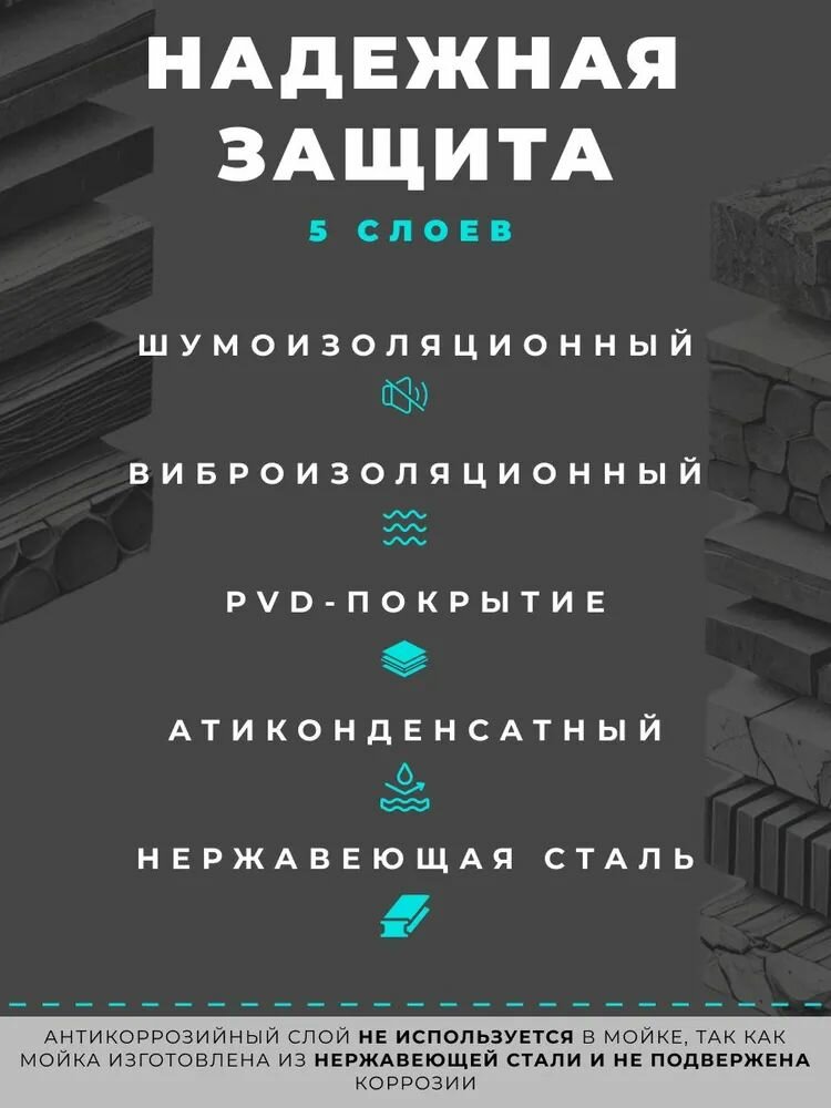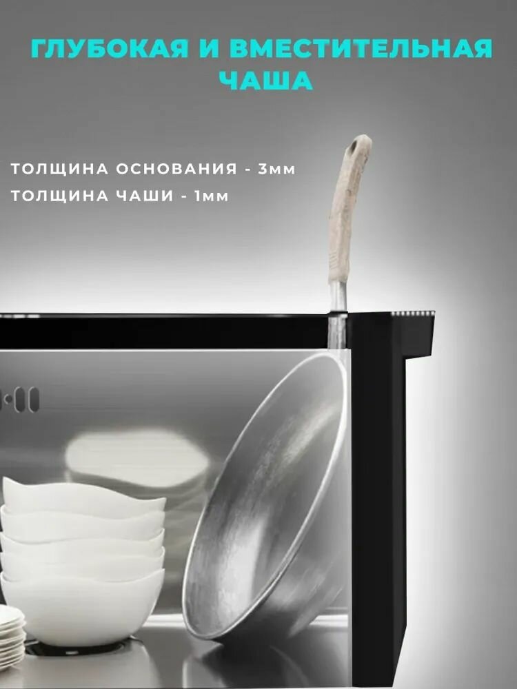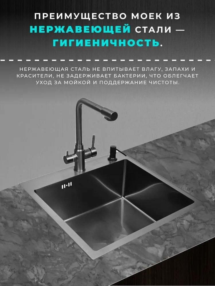 Купить Мойка для кухни нержавеющая 50х50, с PVD покрытием графит, текстура Шагрень. Сифон с ситечком. WGS35050BT/WGER019B с доставкой по всей России.