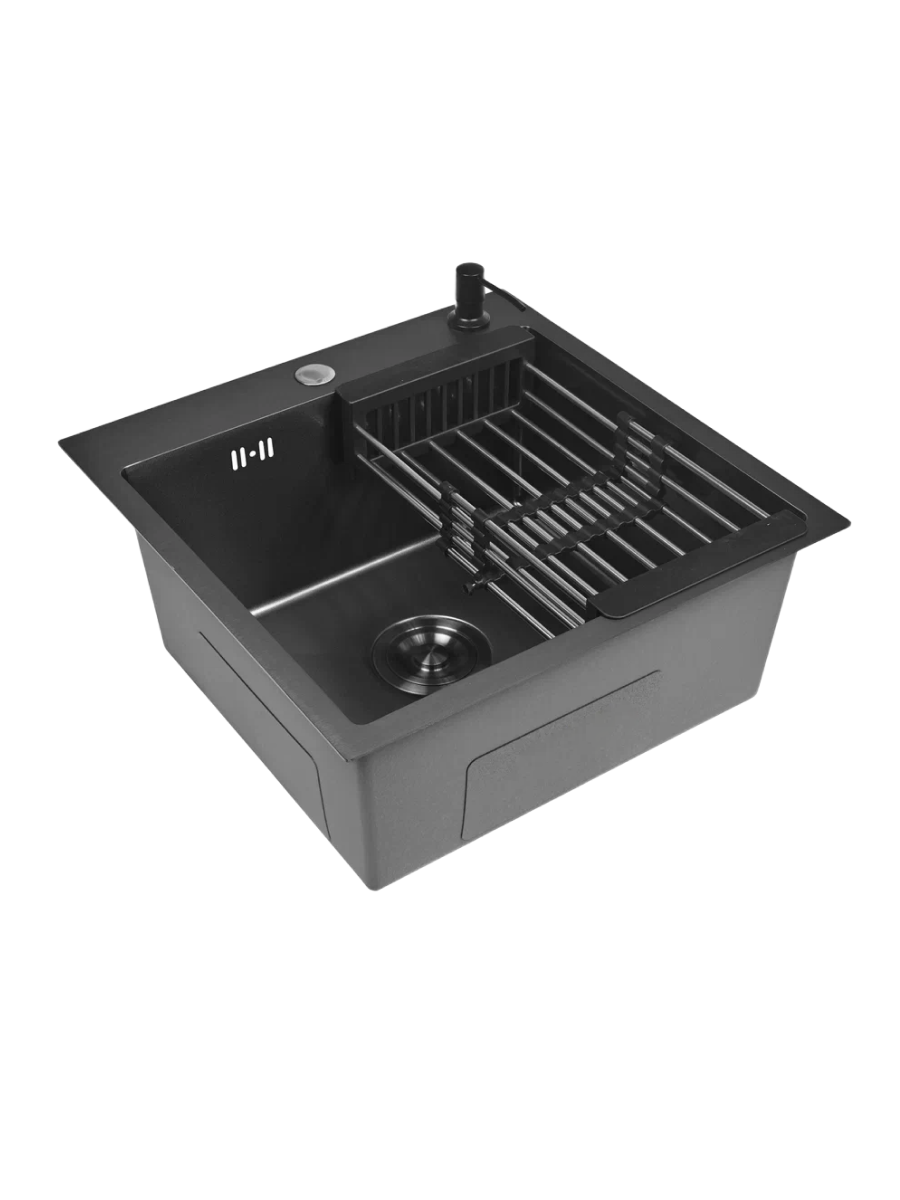 Мойка для кухни нержавеющая 50х50, с PVD покрытием графит, текстура Шагрень. Сифон с ведерком, дозатор, коландер.: сравнение цен, характеристики, фото, актуальное наличие и цены.