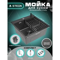 Купить Мойка для кухни нержавеющая 50х50, с PVD покрытием графит, текстура Шагрень. Сифон с ведерком, дозатор, коландер. с доставкой по всей России.