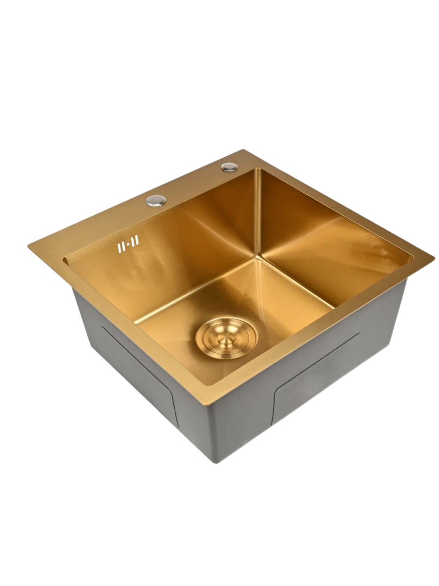 Купить Мойка для кухни нержавеющая 50х50, с PVD покрытием золото. Сифон с ведерком. с доставкой по всей России.