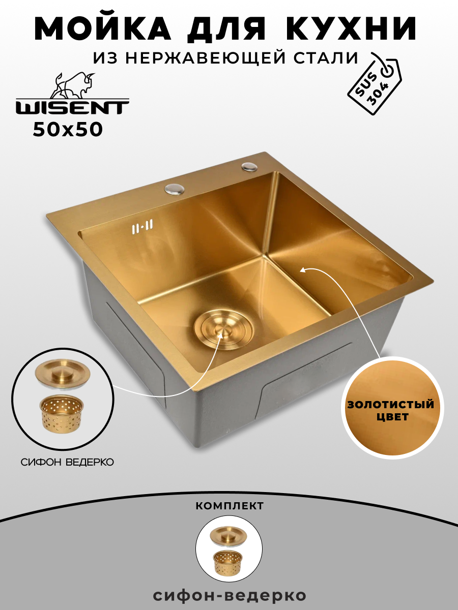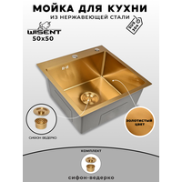 Мойка для кухни нержавеющая 50х50, с PVD покрытием золото. Сифон с ведерком. WGS35050G/W02-144G: сравнение цен, характеристики, фото, актуальное наличие и цены.
