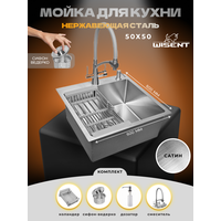 Купить Мойка для кухни нержавеющая 50х50. Смеситель, сифон с ведерком, дозатор, коландер. с доставкой по всей России.