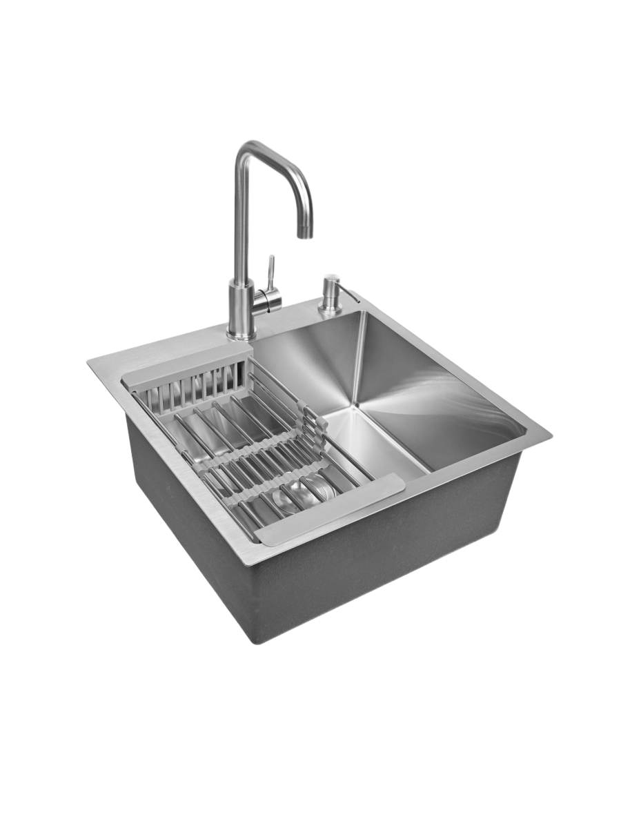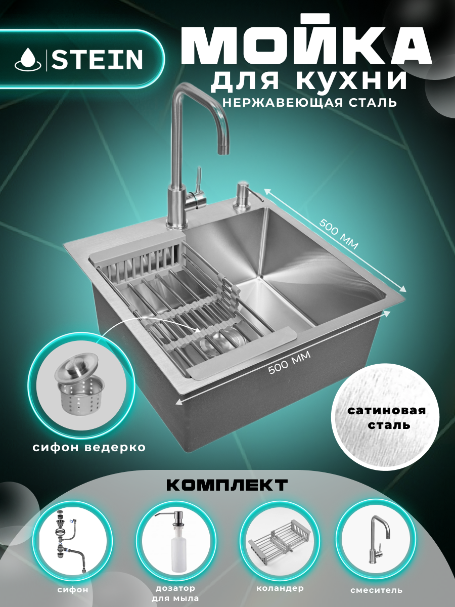 Купить Мойка для кухни нержавеющая 50х50. Смеситель, Сифон с ведерком, дозатор, коландер. ST35050/W02-114/W405A/W302644/W4998-4 с доставкой по всей России.