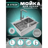 Купить Мойка для кухни нержавеющая 60х45, рифленая. Смеситель, Сифон с ведерком, дозатор, коландер. с доставкой по всей России.