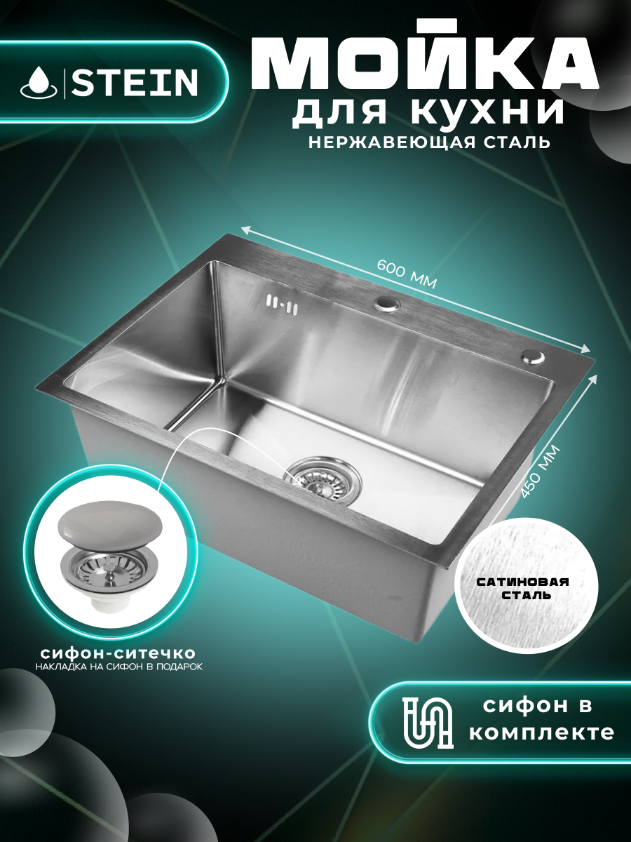 Купить Мойка для кухни нержавеющая 60х45. Сифон с ситечком. ST36045/031 с доставкой по всей России. Мойка для кухни нержавеющая 60х45. Сифон с ситечком. ST36045/031: сравнение цен, характеристики, фото, актуальное наличие и цены.