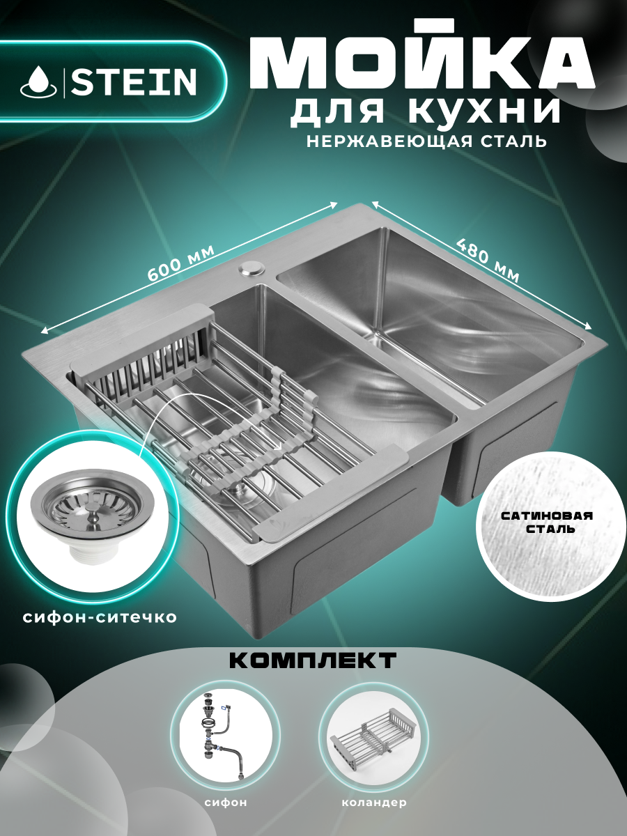 Купить Мойка для кухни нержавеющая 60х48, с двумя чашами. Сифон с ситечком, коландер. ST36048/341-11-24/ST302644 с доставкой по всей России. Мойка для кухни нержавеющая 60х48, с двумя чашами. Сифон с ситечком, коландер. ST36048/341-11-24/ST302644: сравнение цен, характеристики, фото, актуальное наличие и цены.