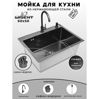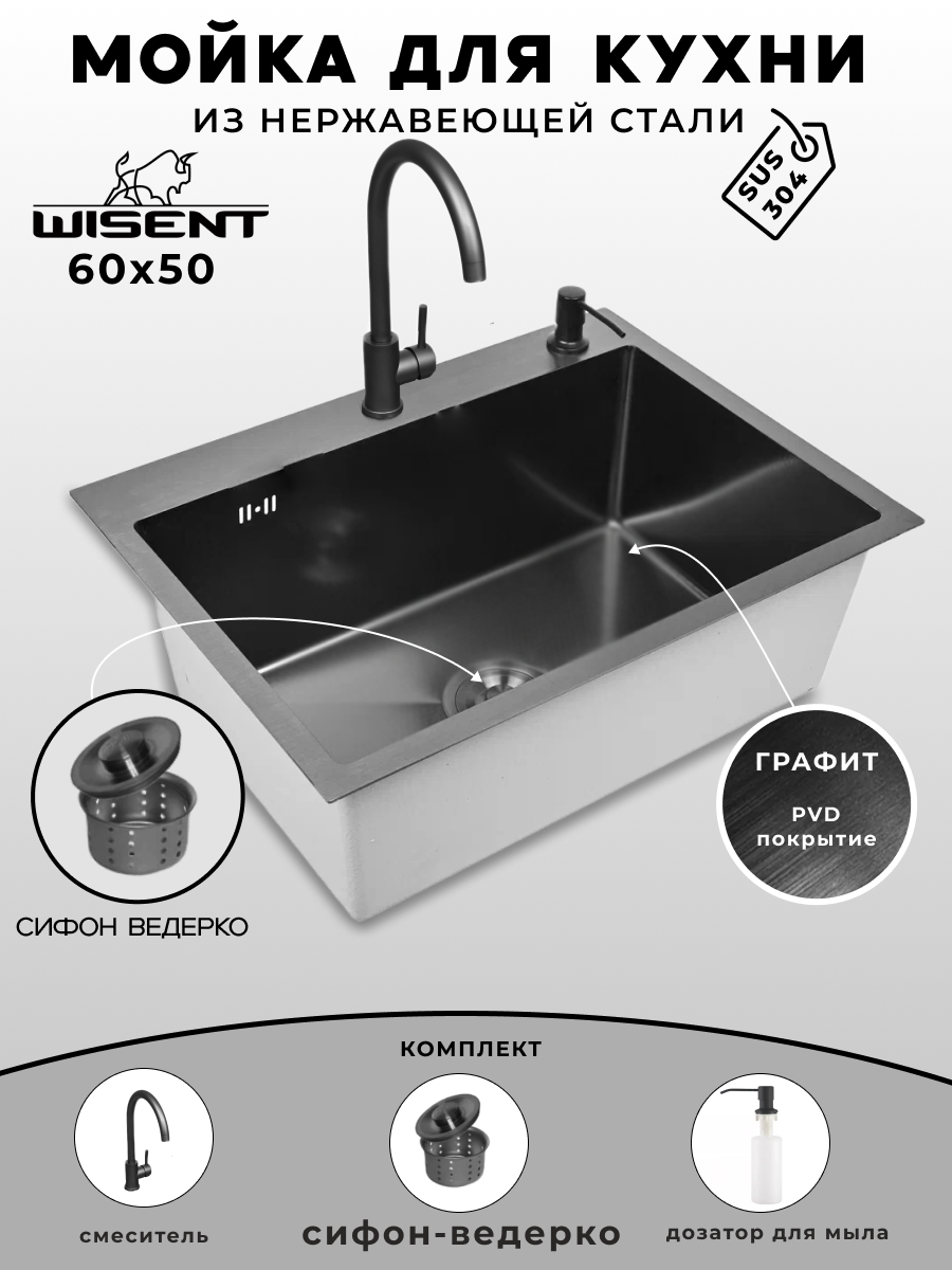 Купить Мойка для кухни нержавеющая 60х50, с PVD покрытием графит. Смеситель, сифон с ведерком, дозатор. с доставкой по всей России. Мойка для кухни нержавеющая 60х50, с PVD покрытием графит. Смеситель, сифон с ведерком, дозатор.: сравнение цен, характеристики, фото, актуальное наличие и цены.