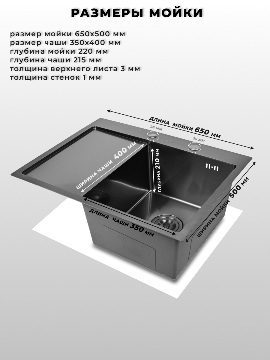 | Дополнительная информация | Отверстия под смеситель: 1 |