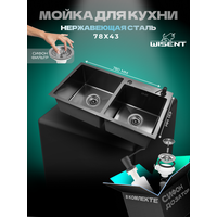 Мойка для кухни нержавеющая 78х43, с PVD покрытием графит, двумя чашами. Сифон с ситечком, дозатор.: сравнение цен, характеристики, фото, актуальное наличие и цены.