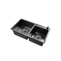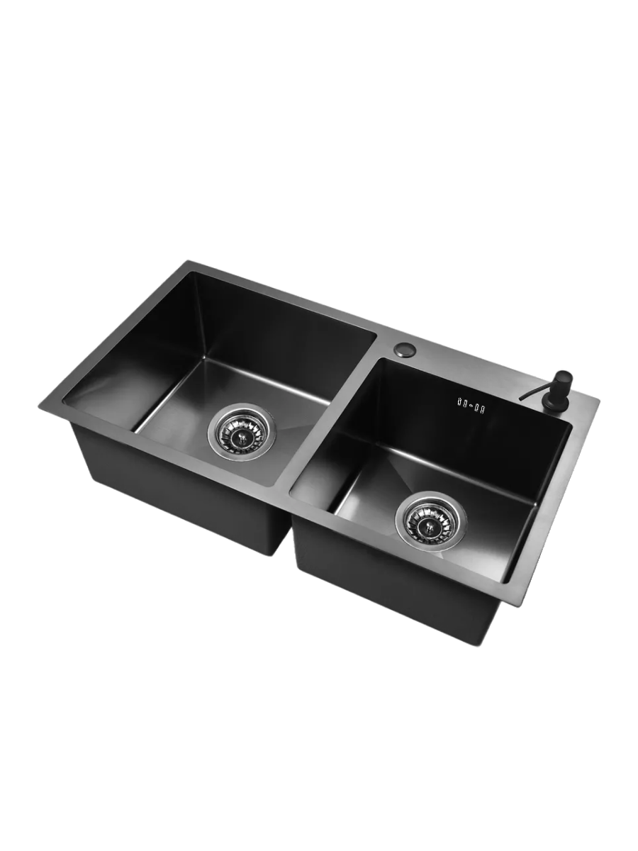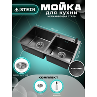 Купить Мойка для кухни нержавеющая 78х43, с PVD покрытием графит, с двумя чашами. Сифон с ситечком, дозатор. с доставкой по всей России.