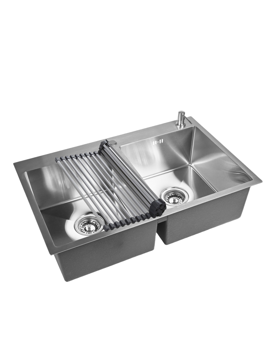Купить Мойка для кухни нержавеющая 78х50, с двумя чашами. Сифон с ситечком, дозатор, решетка. с доставкой по всей России.