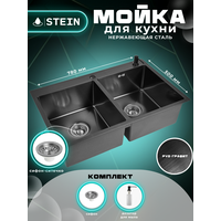Купить Мойка для кухни нержавеющая 78х50, с PVD покрытием графит, с двумя чашами. Сифон с ситечком, дозатор. с доставкой по всей России.
