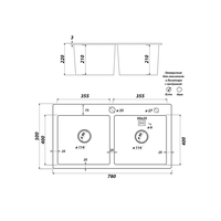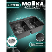 Купить Мойка для кухни нержавеющая 78х50, с PVD покрытием графит, с двумя чашами. Сифон с ситечком. ST37850B-S/341-11-24 с доставкой по всей России.
