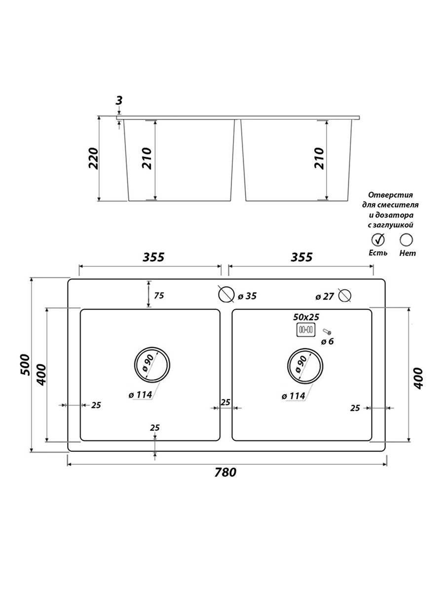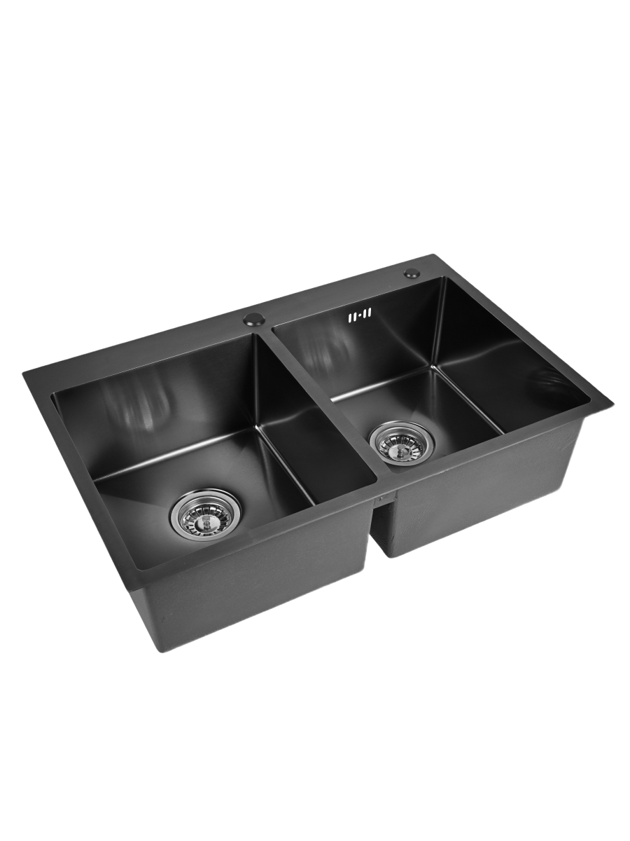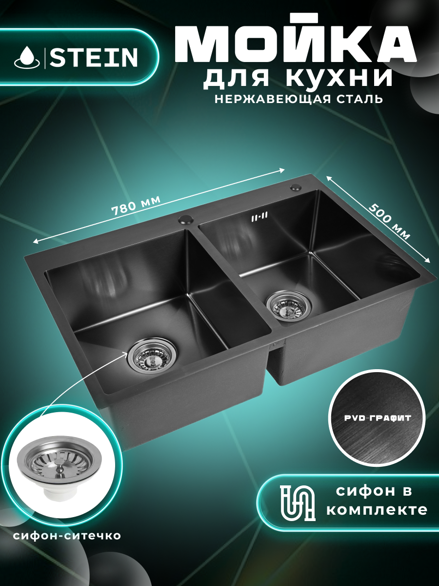 Мойка для кухни нержавеющая 78х50, с PVD покрытием графит, с двумя чашами. Сифон с ситечком. ST37850B-S/341-11-24: сравнение цен, характеристики, фото, актуальное наличие и цены.