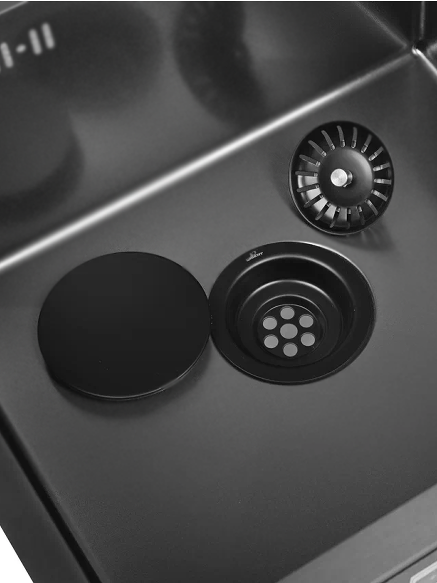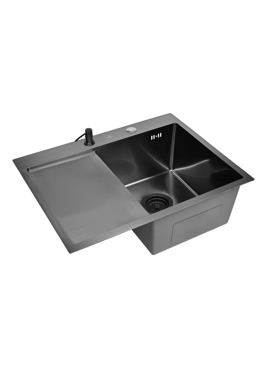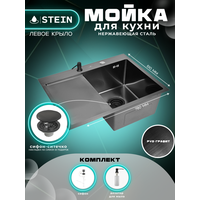 Купить Мойка для кухни нержавеющая 78х51, с левым крылом, с PVD покрытием графит. Сифон с ситечком, дозатор. с доставкой по всей России.