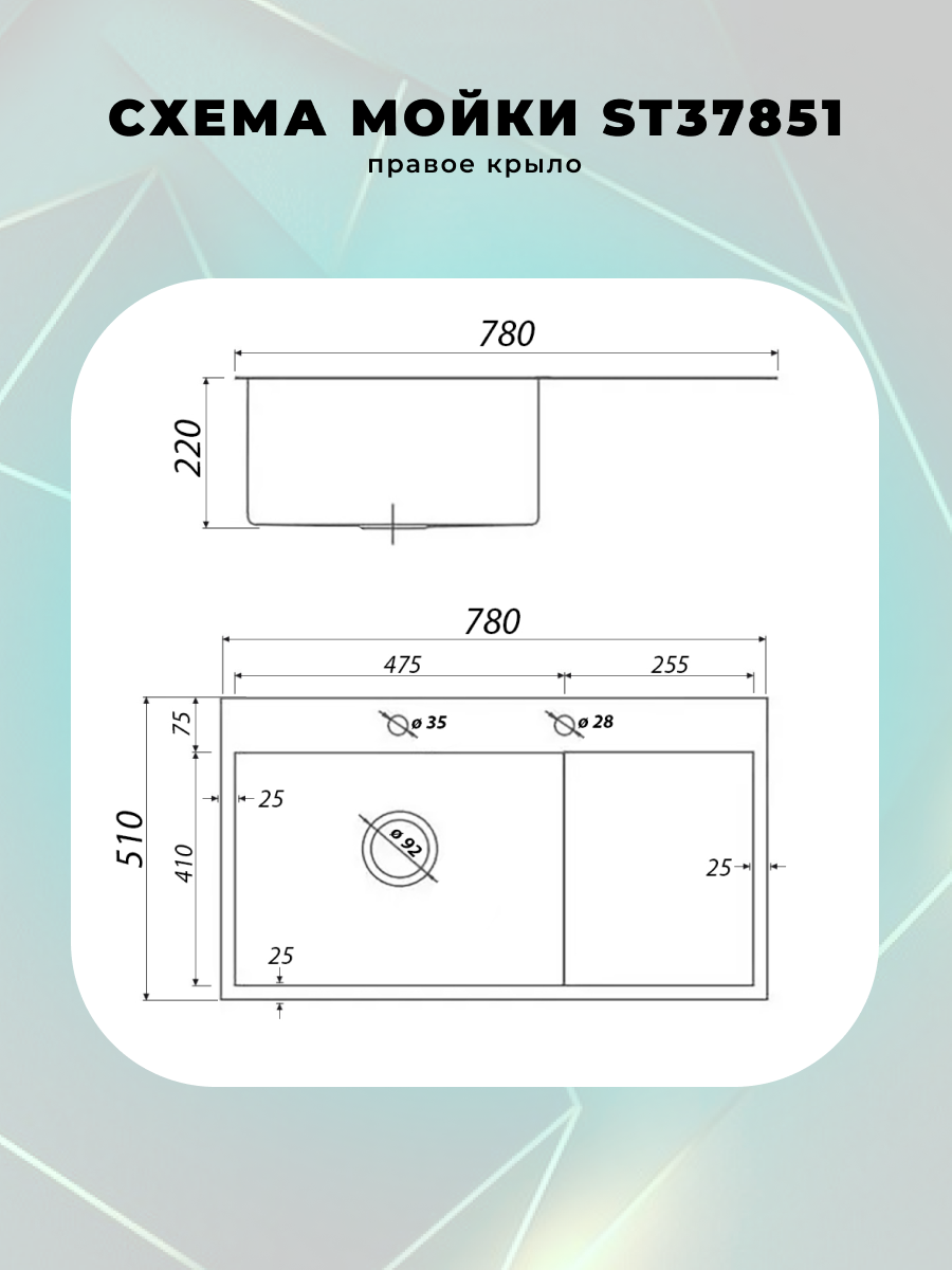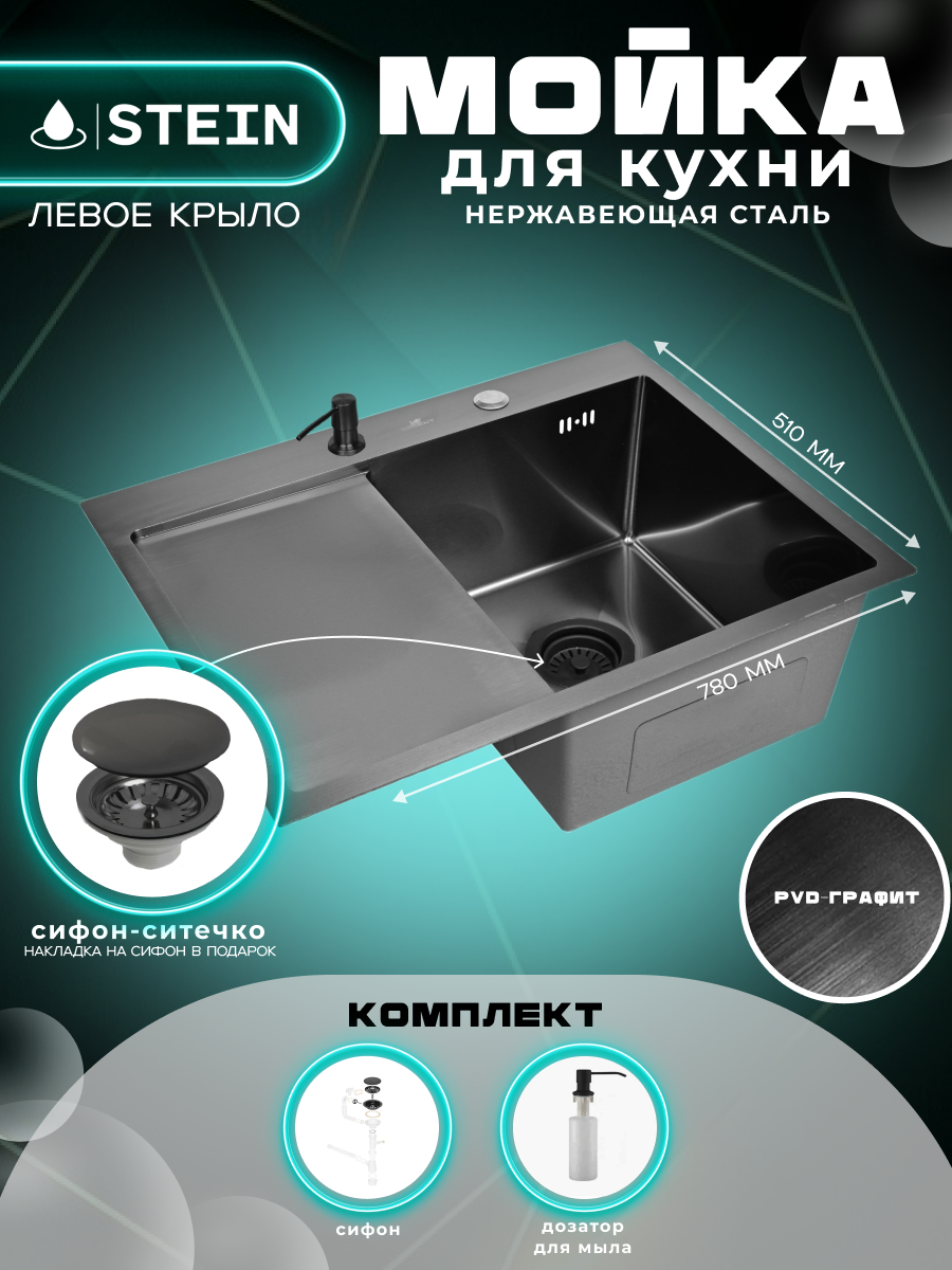 Мойка для кухни нержавеющая 78х51, с левым крылом, с PVD покрытием графит. Сифон с ситечком, дозатор.: сравнение цен, характеристики, фото, актуальное наличие и цены.