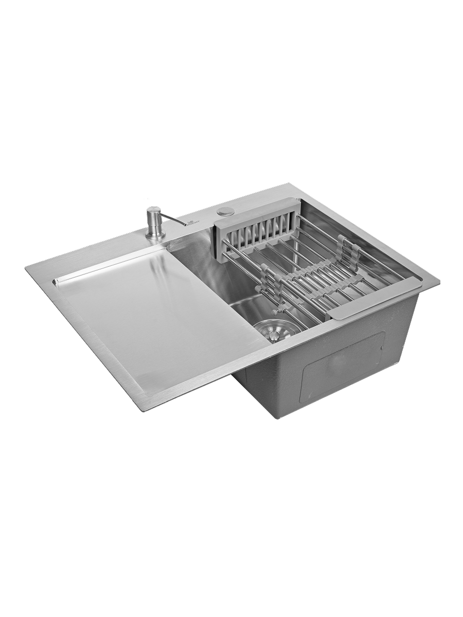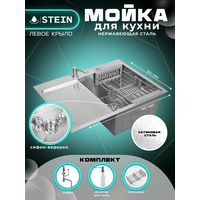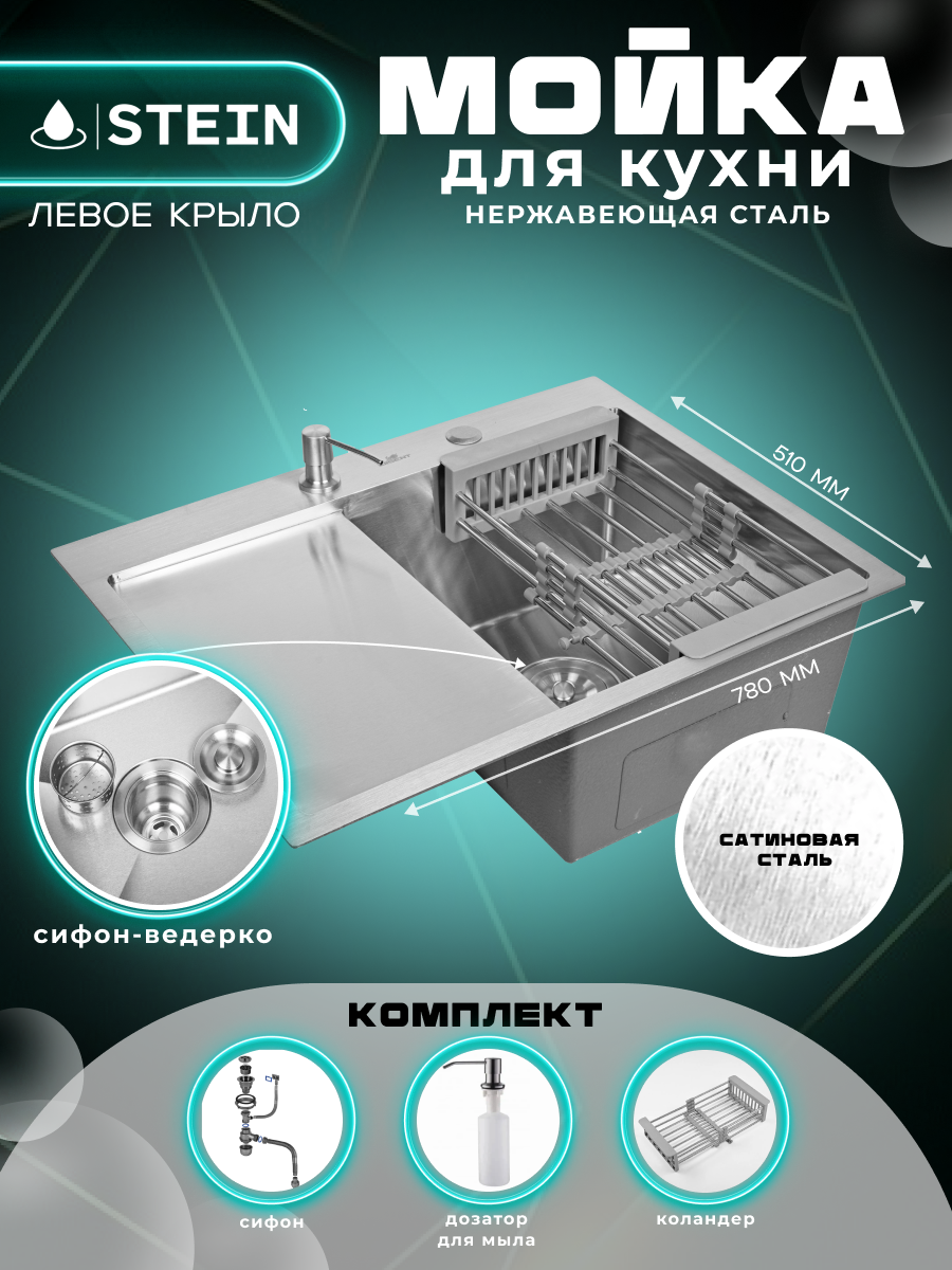 Мойка для кухни нержавеющая 78х51, с левым крылом. Сифон с ведерком, дозатор, коландер. ST37851-R/W02-114/W405A/W302644: сравнение цен, характеристики, фото, актуальное наличие и цены.