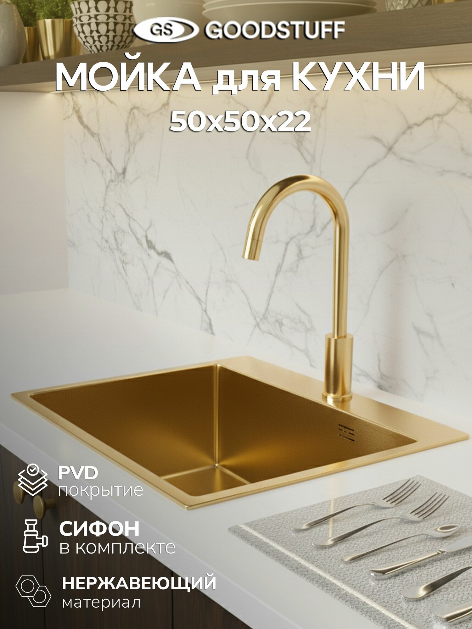 Мойка для кухни нержавеющая GoodStuff 50*50, золото. Раковина для кухни: сравнение цен, характеристики, фото, актуальное наличие и цены.