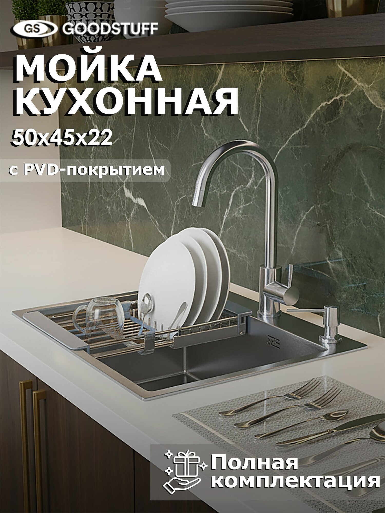 Мойка для кухни нержавеющая GoodStuff 50х45, сатин. Раковина для кухни: сравнение цен, характеристики, фото, актуальное наличие и цены.
