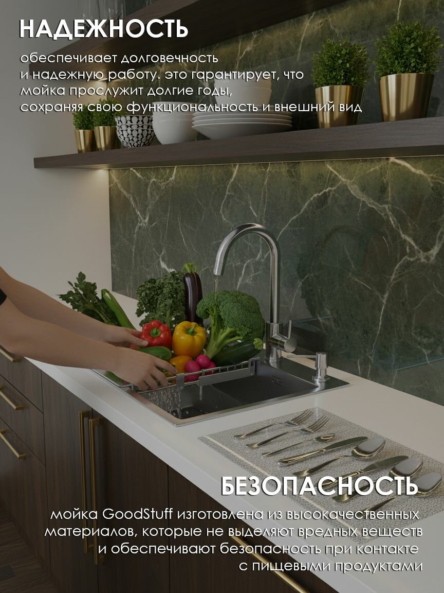 Мойка для кухни нержавеющая GoodStuff 60х45, сатин. Раковина для кухни