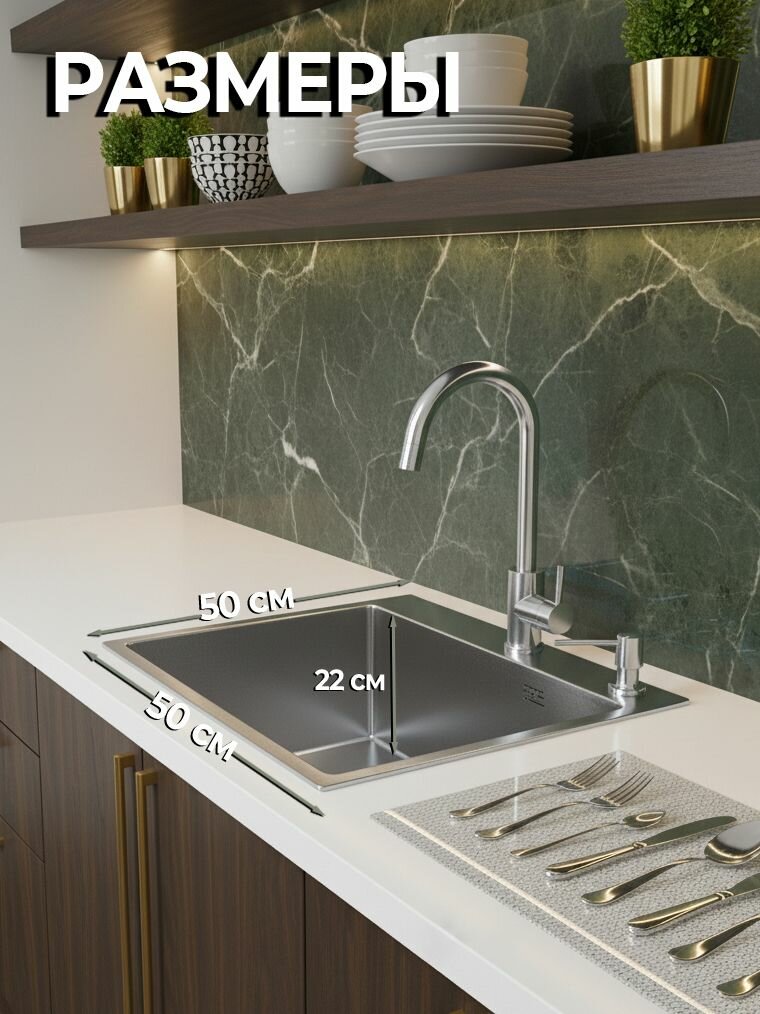 Мойка для кухни нержавеющая GoodStuff 50х50, сатин. Раковина для кухни