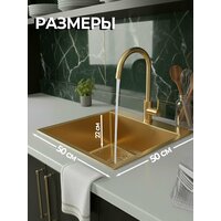 Мойка для кухни нержавеющая GoodStuff 50х45, золото. Раковина для кухни