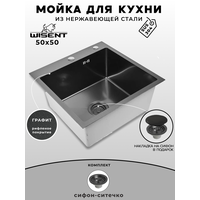 Мойка для кухни нержавеющая 50х50, рифленая, с PVD покрытием графит. Сифон с ситечком.: сравнение цен, характеристики, фото, актуальное наличие и цены.