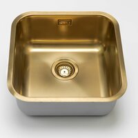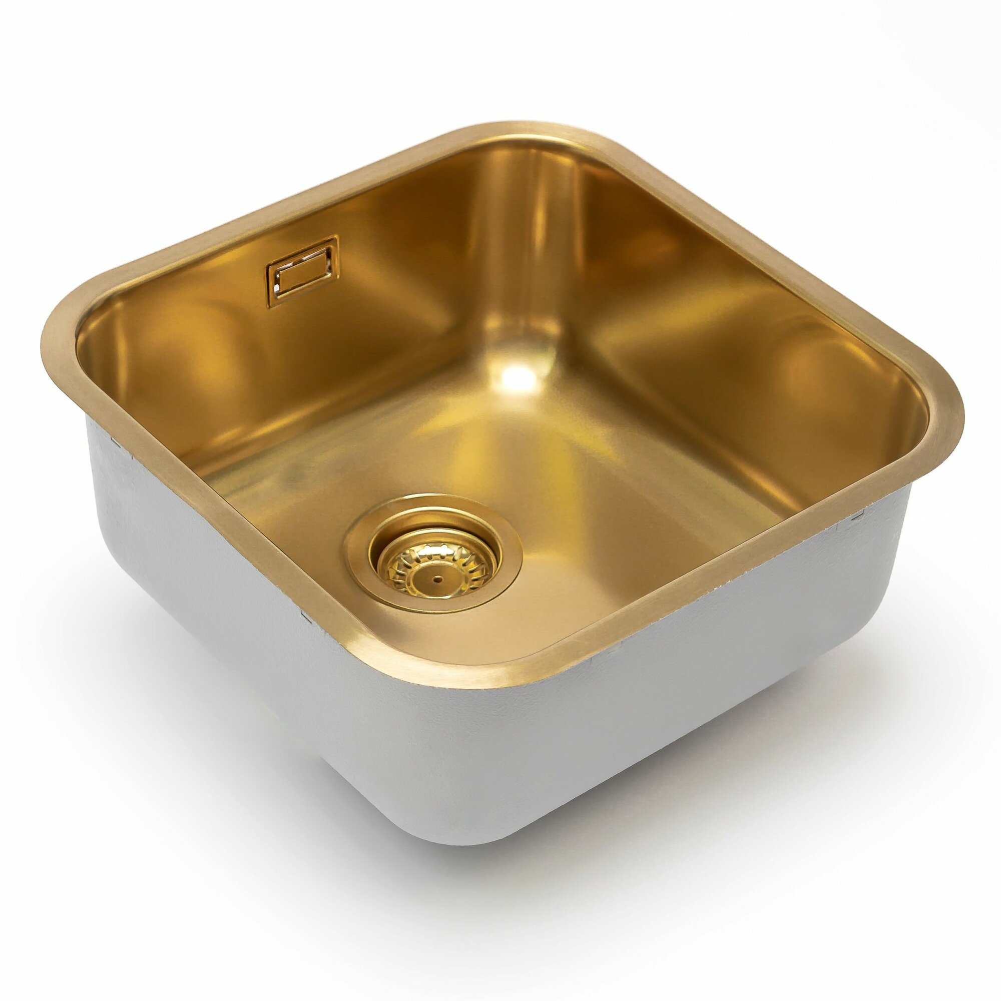 Купить Мойка для кухни нержавеющая сталь врезная золотая с PVD покрытием Grandex Aqua SELECT 44 GOLD, 44.5х44.5х18.5 / Раковина для кухни накладная нержавейка, сифон в комплекте, Турция, цвет золото с доставкой по всей России.