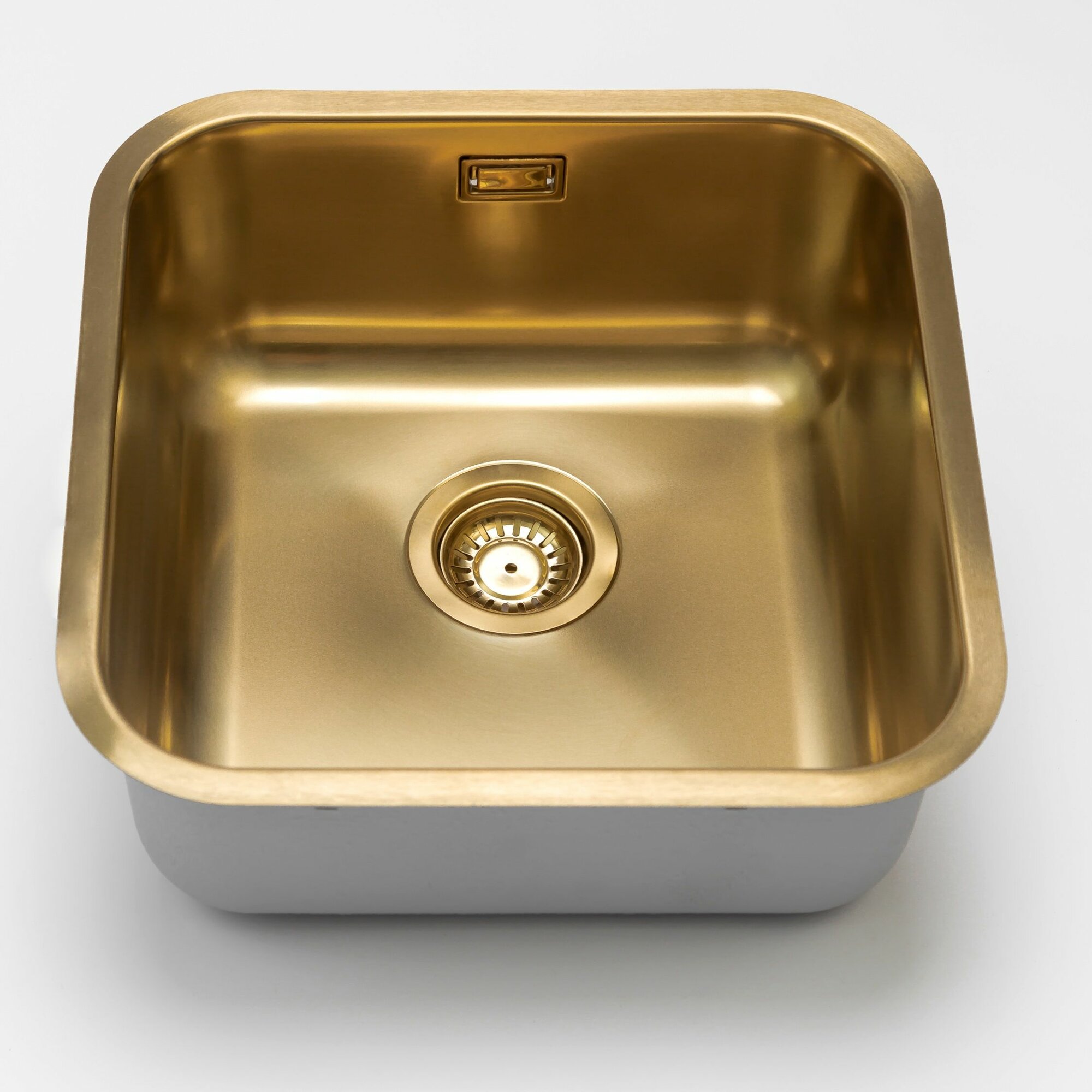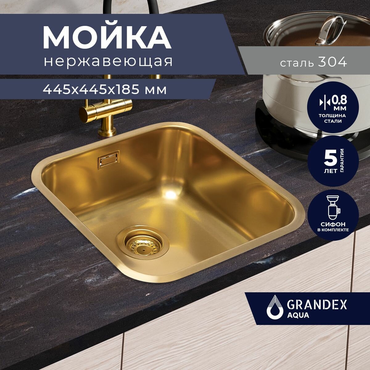Мойка для кухни нержавеющая сталь врезная золотая с PVD покрытием Grandex Aqua SELECT 44 GOLD, 44.5х44.5х18.5 / Раковина для кухни накладная нержавейка, сифон в комплекте, Турция, цвет золото: сравнение цен, характеристики, фото, актуальное наличие и цены.