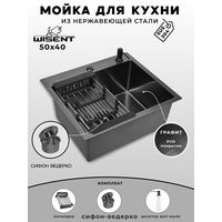 Мойка для кухни нержавеющая 50х40, с PVD покрытием графит. Сифон с ведерком, дозатор, коландер.: сравнение цен, характеристики, фото, актуальное наличие и цены.