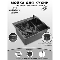 Купить Мойка для кухни нержавеющая 50х40, с PVD покрытием графит. Сифон с ситечком, дозатор, коландер. с доставкой по всей России.